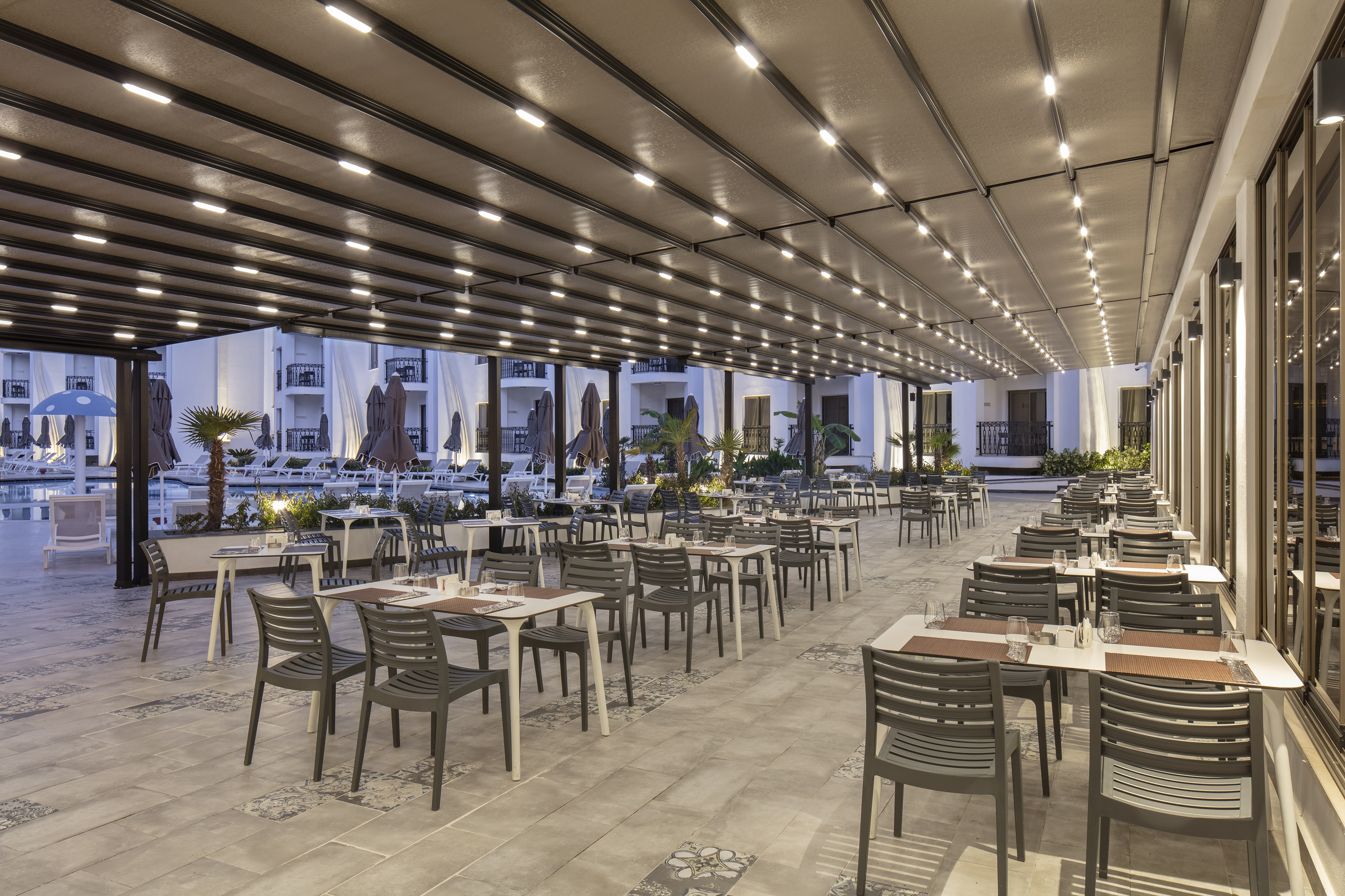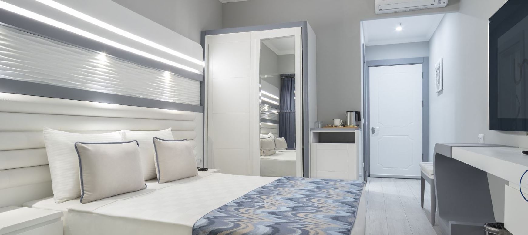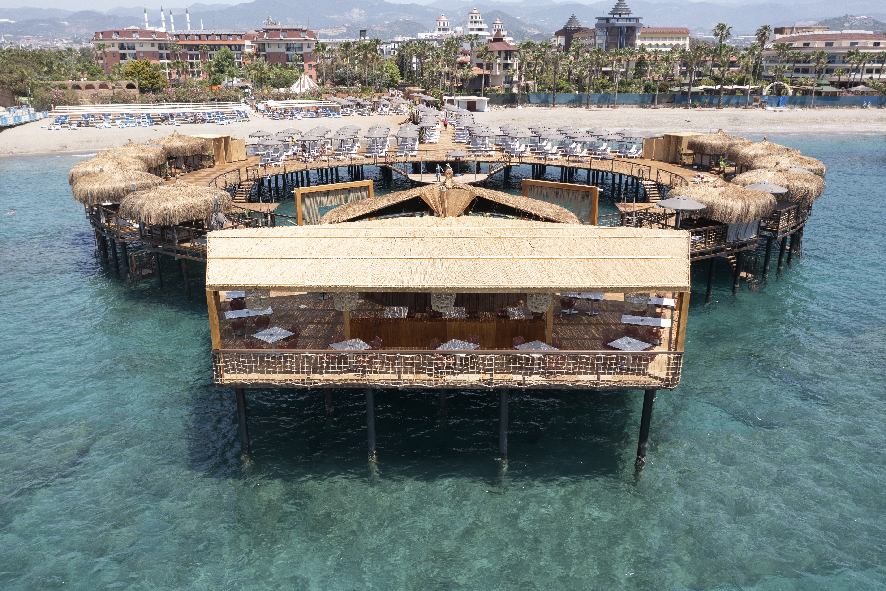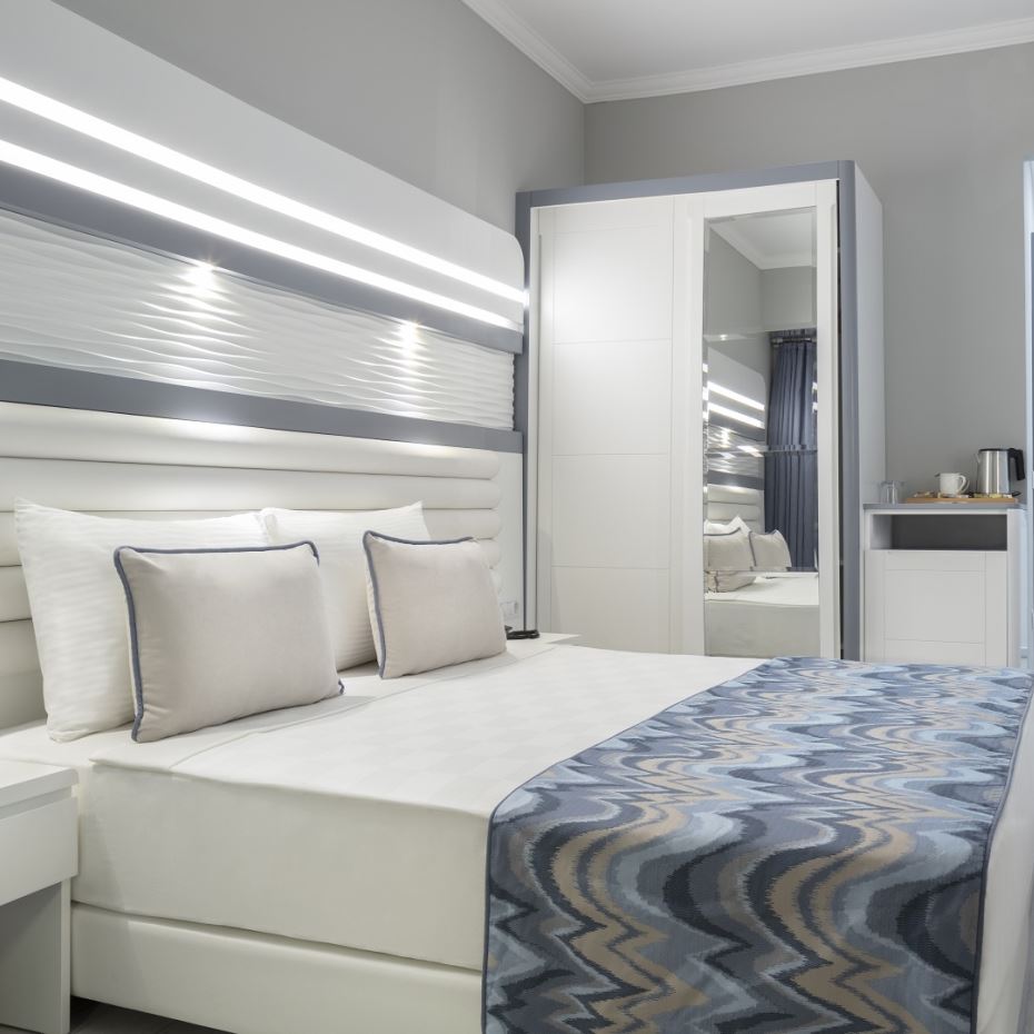 Our hotel is located in Konakli territory of Alanya in Antalya. It is built on a 4300 meter square land as 6300m² construction area. Our hotel is 14 km away from center, 200 meters from Konakli, 56 km from Gazipasa airport and 110 km from Antalya airport. There are total 155 rooms in our hotel. There are 2 outdoor swimming pool, 1 indoor heated swimming pool, 1 outdoor swimming pool for children. In our SPA center we have Turkish bath, sauna, salt room, vapour room and there are total of 6 massage rooms, (Turkish bath, sauna, jacuzzi, massage). There is are main restaurant (indoor are for 200 people, outdoor area for 144 people) and 1 A La Carte restaurant (for 25 people)A pier with naturel pool, sunbathing area, showers, wc and changing rooms are available in our 2000 m² big mixed with sand and gravel specral concept beach.