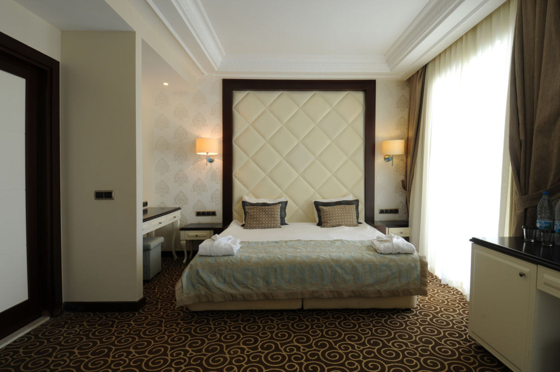 The hotel Goldcity Hotel is located approximately 4 km from the private beach. The city centre is around 15 km away. At the beach there is a bar serving refreshing drinks. To reach the beach a shuttle is provided. The hotel is equipped with a reception, a lobby bar as well as internet access. Furthermore, you can relax outdoors in the garden.
