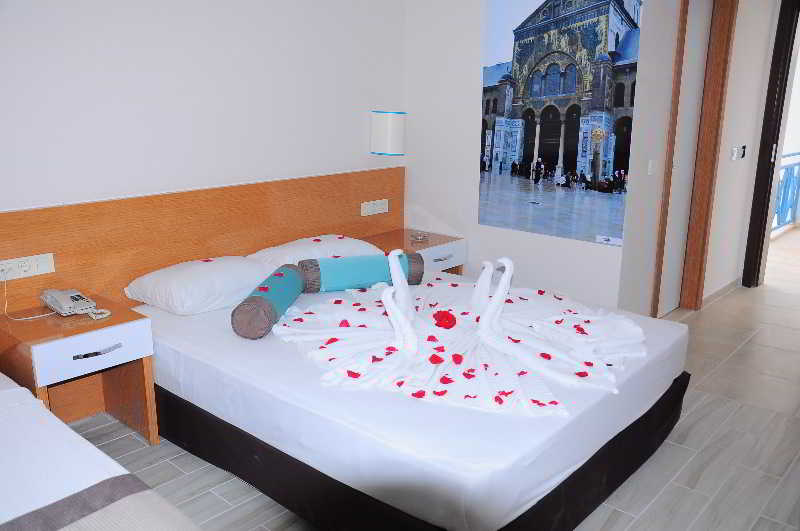 Located in the district of Kiris, approximately 6 km from Kemer on Turkey's turquoise coast, this hotel has a simple and modern design and offers a great place to stay for enjoying this beautiful area. The beach is a short stroll from the property and there is a bus stop a few metres away enabling easy access to Kemer for a good choice of shops and lively nightlife or further afield to the historical quarter of Antalya known as Kaleici, 50 km away. In the immediate vicinity of the hotel guests will also find small shops and cafe bars. The property boasts a spacious outdoor area with large pool and terraces ideal for sunbathing or enjoying a refreshing drink or snack under the shade of umbrellas.
