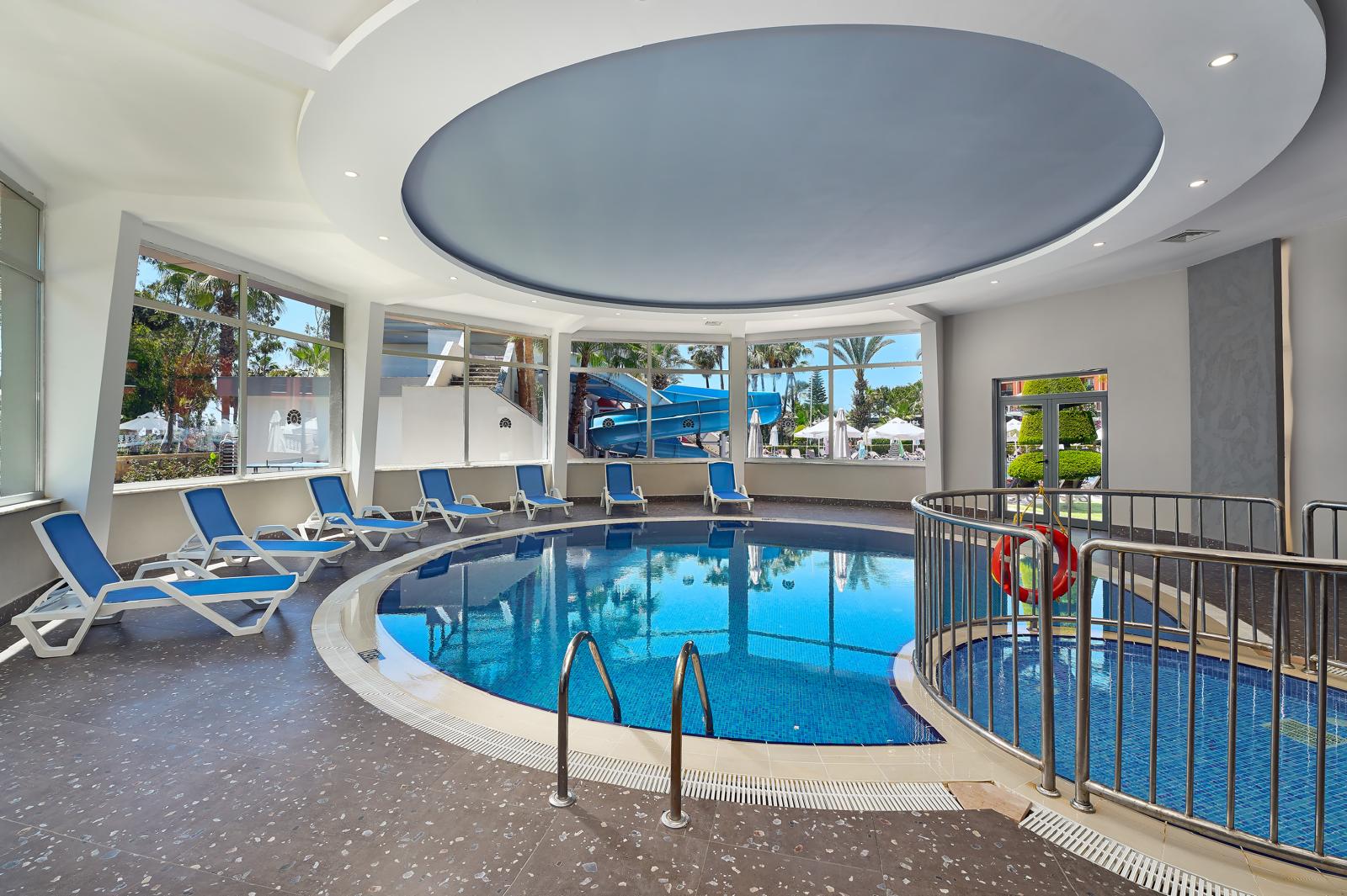 The hotel features elegant rooms, some of which enjoy splendid views over the sea. It has a private sandy beach with free sun loungers and parasols and offers a pool with 3 water slides as well as a children's pool and a mini club. Guests will appreciate the well-equipped fitness centre as well as the spa area with Turkish bath and sauna. An excellent choice for couples and families with children wishing to spend a nice holiday on the beach.