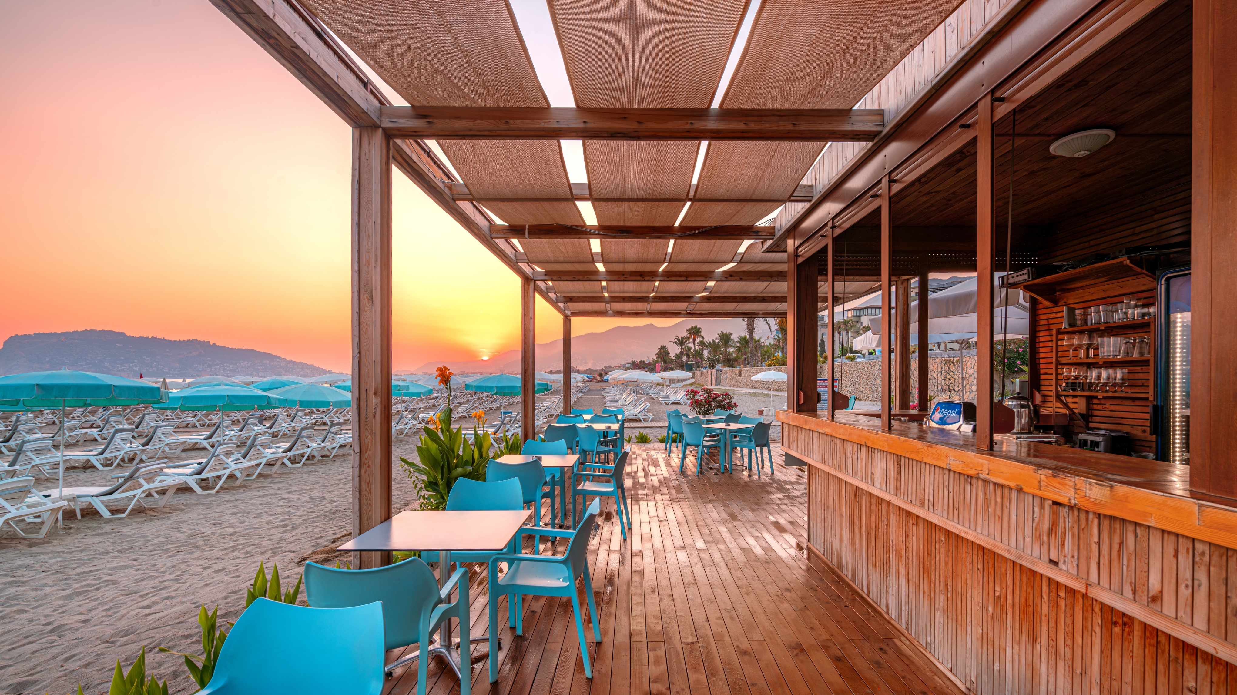 The hotel features an L-shaped pool with a water slide, surrounded by a terrace with sun loungers. Younger guests will love the play area and the mini club, while adults will appreciate the fitness centre. After a long day at the beach or on a shopping and sightseeing trip, guests may make use of the Turkish bath, the sauna or the massage services. This place perfectly combines the features of a holiday hotel on the beach with the fantastic amenities only a city like Alanya can offer.