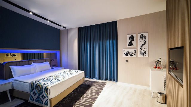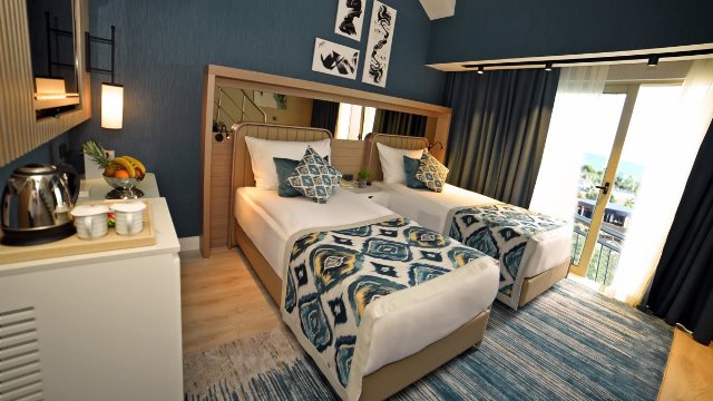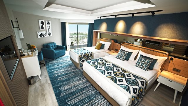 Локација: Хотелот се наоѓа во Лара. Приближно е 14км од аеродромот во Анталија. 18kм од центарот на Анталија. Сместување: Вкупниот број на соби е 460 распоредени во една зграда со две крила. Услуга: Ultra All inclusive (ултра се вклучено) Плажа: Пред плажа. Хотелска приватна песочна плажа, бесплатни чадори, лежалки и пешкири. Спорт и забава: Надворешен и внатрешен базен за возрасни и деца, Аква парк со 9 тобогани и базен со бранови, забавен парк за деца...
