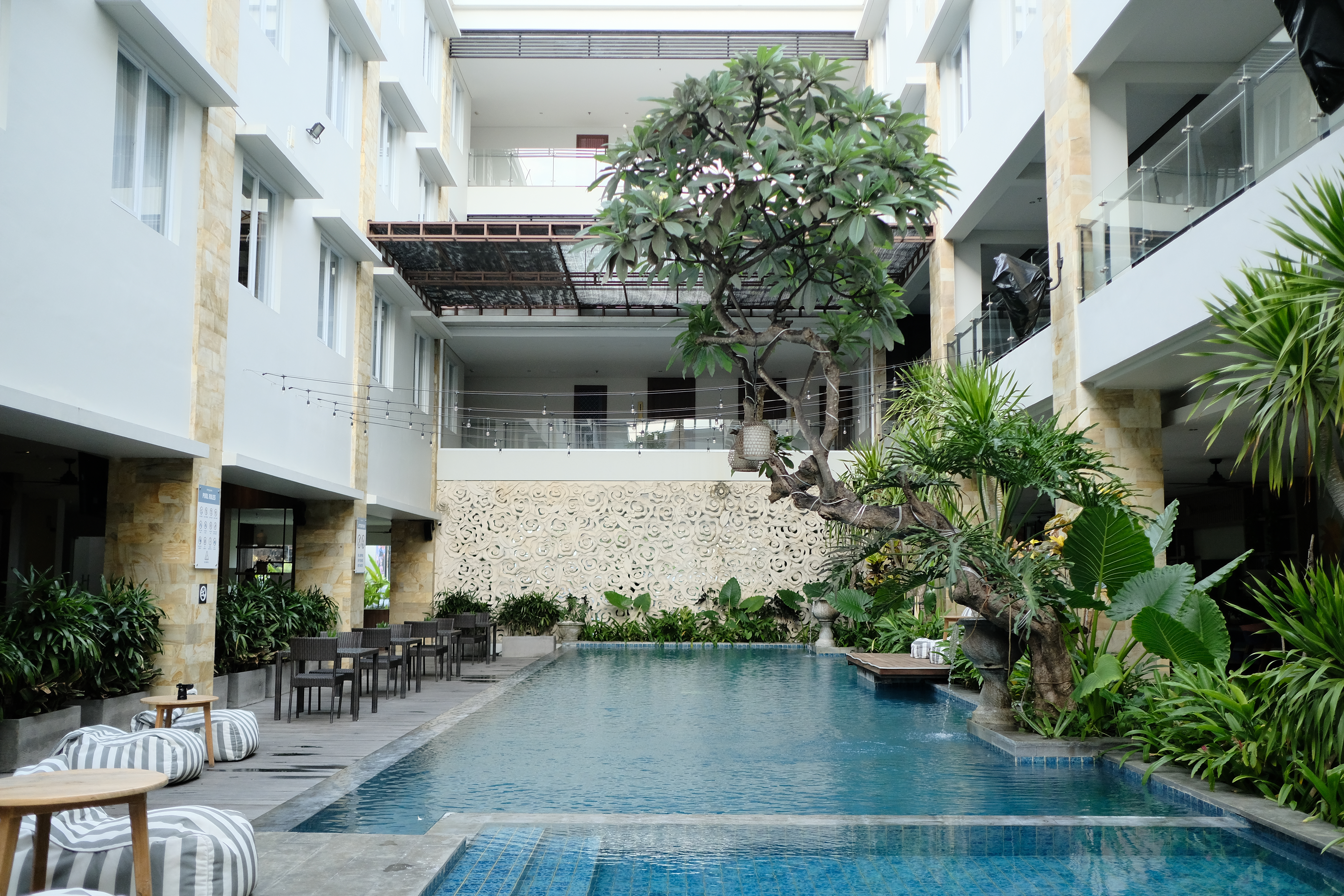 This stylish property, located just a 9-minute drive from Denpasar International Airport, boasts a prime situation close to Seminyak and Sanur areas. Nusa Dua area, in south-eastern Bali, is just a 14-minute drive from this luxurious establishment. Guests will find a wide choice of entertainment and dining options next to the property, such as the Mall Bali Galleria and Discovery Shopping Mall. It offers a host of accommodation types to suit all clients' needs, ranging from standard rooms to suites with bathtub. All the rooms have been tastefully decorated and come with top quality amenities and services, such as complimentary Wi-Fi internet access and satellite television. This property is the perfect reference point for those travellers looking for quality and exclusive accommodation.