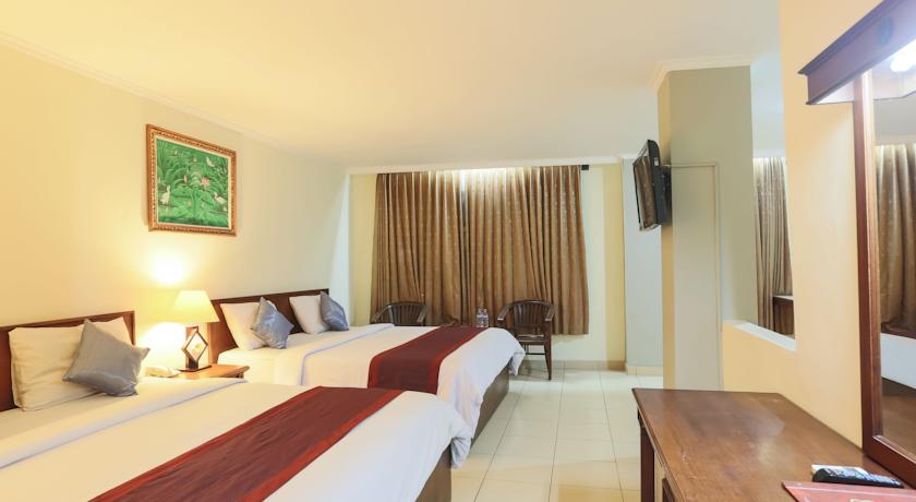 This hotel is located in Kuta, in Bali. The hotel enjoys a strategic setting, lying close to a host of restaurants, shopping centres and nightclubs. Guests will find themselves just a 30 minutes' driving distance away from Bali Ngurah Rai International Airport. This family-friendly hotel enjoys a traditional Balinese design. The guest rooms are sumptuously designed, tempting visitors into a world of elegance and luxury. The rooms come complete with modern amenities, for added comfort and convenience. The open-air restaurant serves dishes from every corner of the world, offering guests the opportunity to savour the delights of European, western, Indonesian and Balinese cuisines. This hotel is sure to impress every type of traveller.