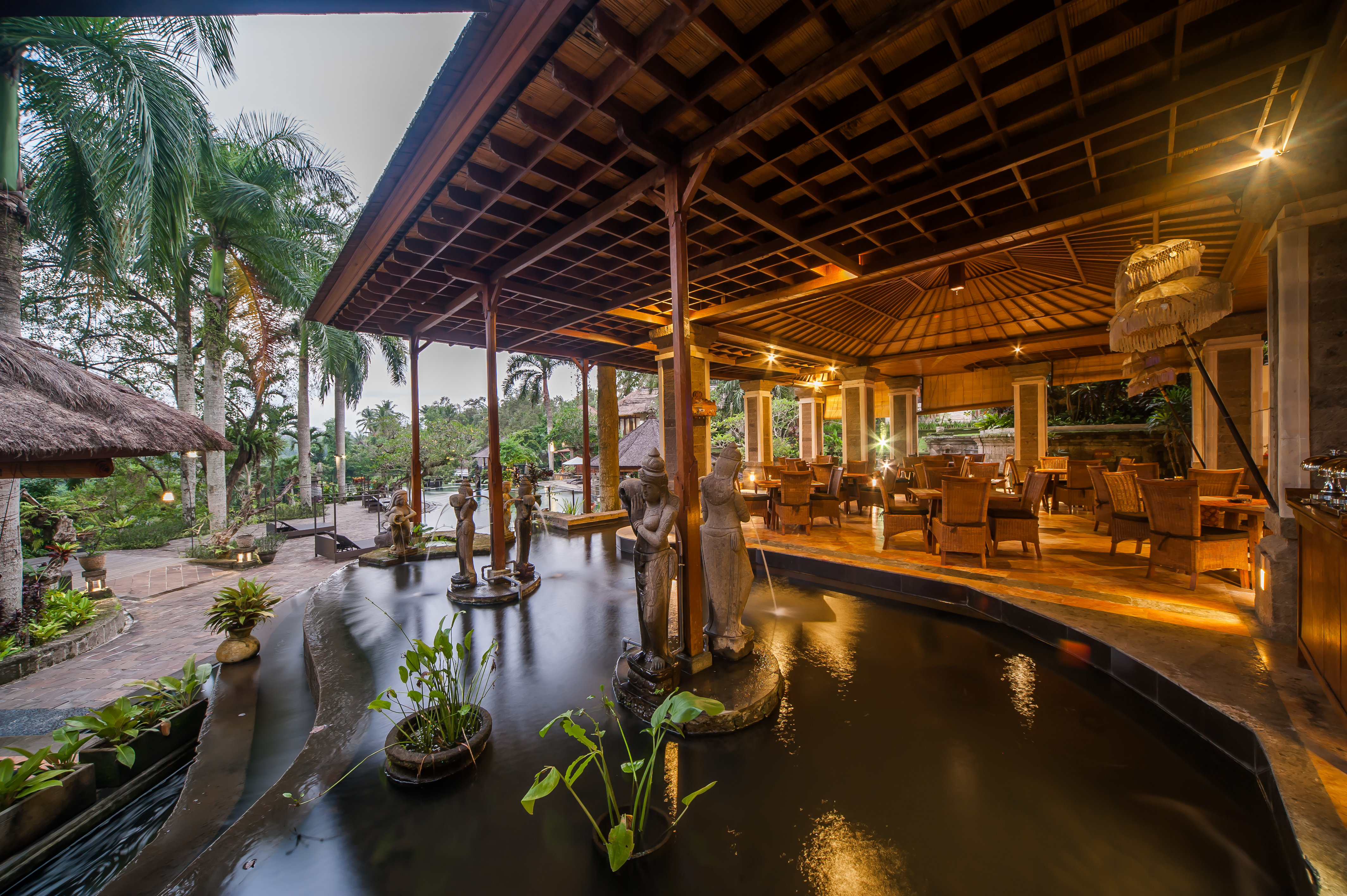 This resort is situated on the outskirts of the Kedewatan village of Ubud. The resort is located on the dramatic Sayan Ridge, sitting high above the river valley. The resort is located just a 15 minutes' driving distance from Ubud, the artistic and cultural capital of Bali. Bali International Airport is situated just a 1 hour's driving distance away from the hotel. This wonderful resort is the perfect choice for those who are eager to explore the rich culture and history of this mesmerising area, as well as those seeking a relaxing, exhilarating break. This wonderful resort comprises beautifully-designed villas, which feature natural elements. The resort affords guests an extensive range of first-class facilities and services, delivering a unique tropical experience complemented by modern conveniences.