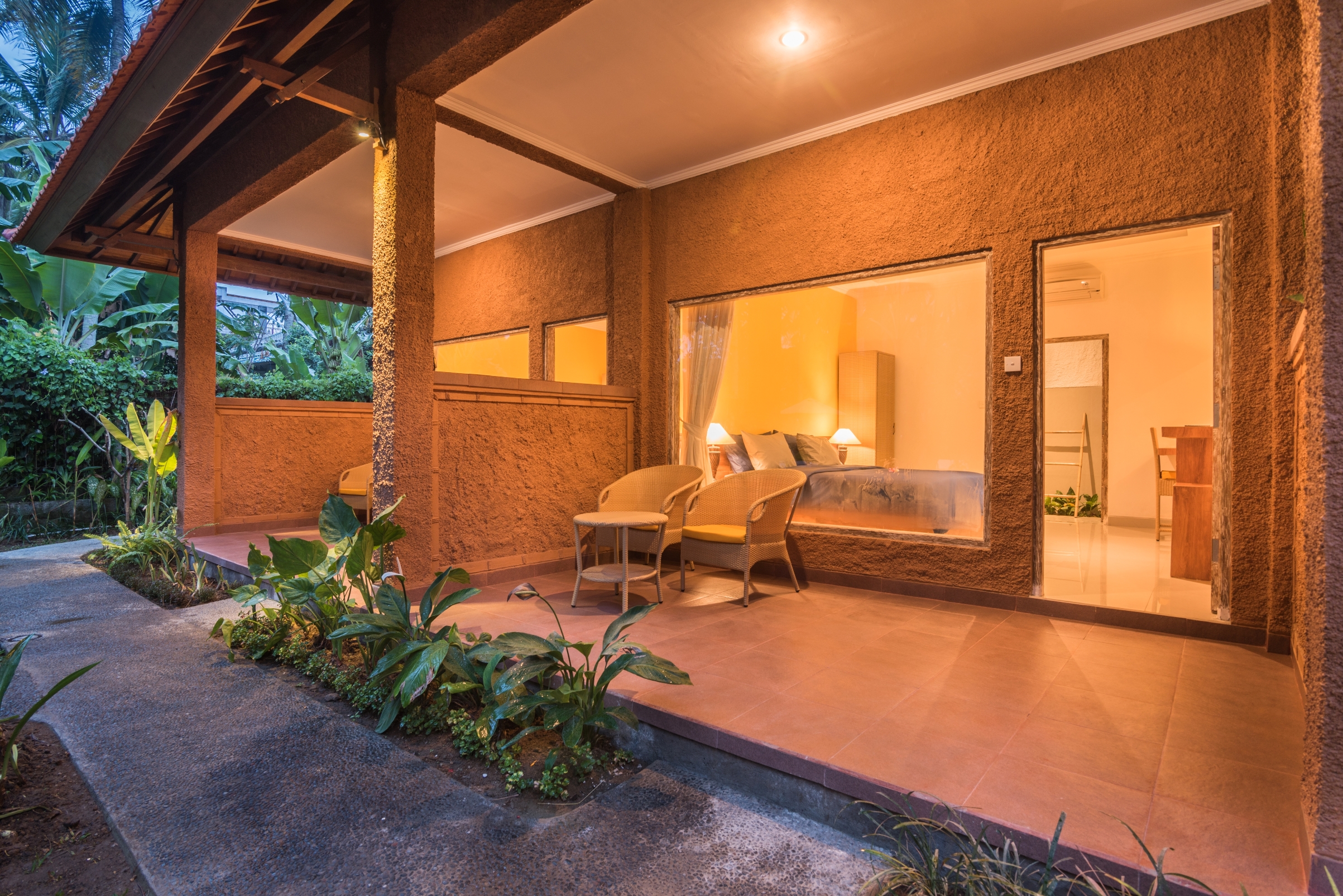 Its five (5) rooms are comfortably designed overlooking the outdoor pool, completed with LED TV, Air conditioner, spacious bathroom with separate bathtub and rain shower, coffee and tea making facilities, sleepers, and beautifully arranged lighting.