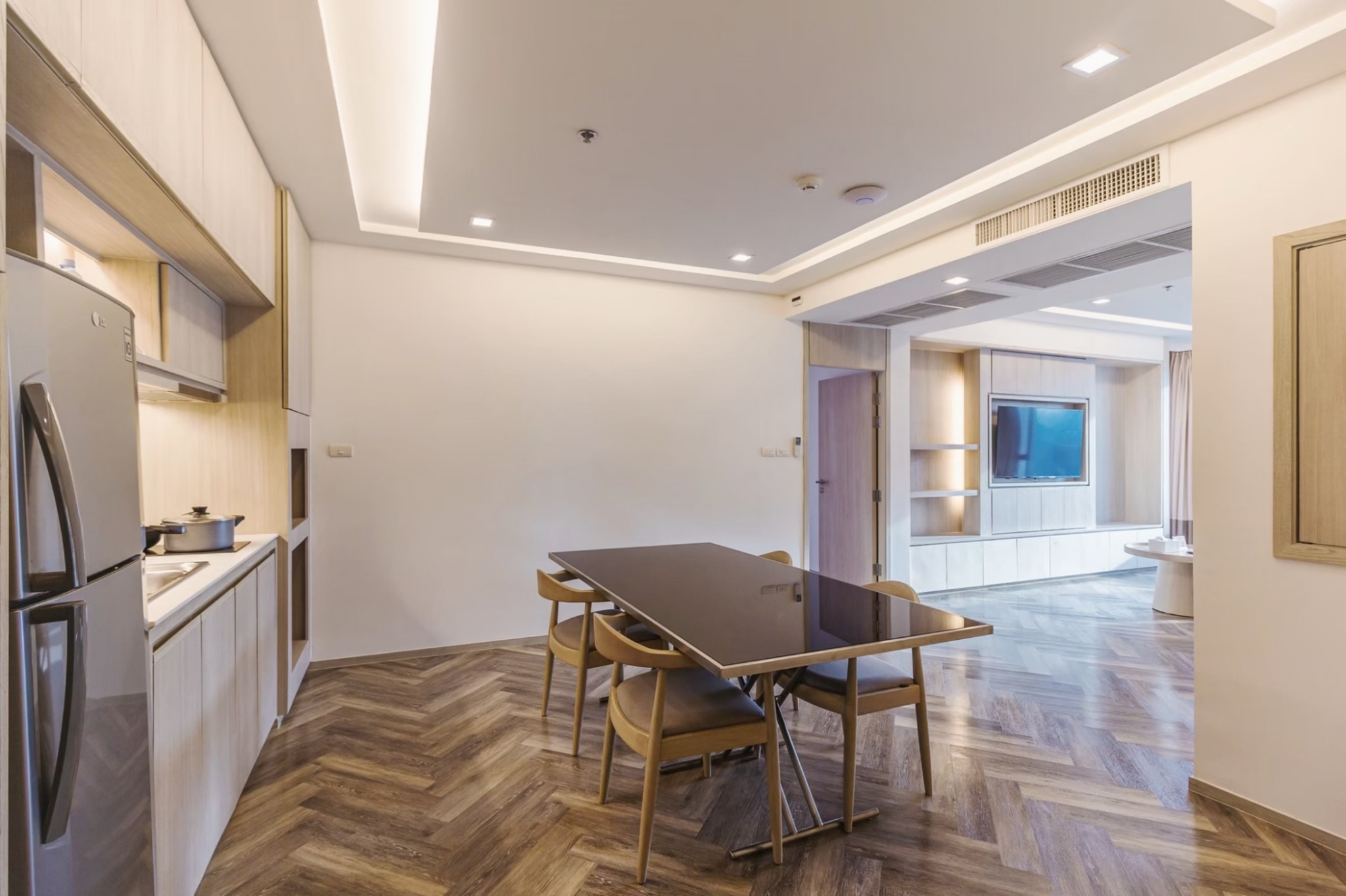 The sleek and modern guest rooms exude an atmosphere of total peace and tranquillity, offering a wonderful respite from the hustle and bustle of the city. Each features regionally influenced décor, an en suite bathroom with bathrobe and slippers, and coffee and tea facilities. Wireless internet access is available for a small fee, and guests can enjoy use of the elegant outdoor pool and sundeck, tennis court, and fitness centre with Jacuzzi, steam bath and sauna, all during a pleasant stay in Bangkok.