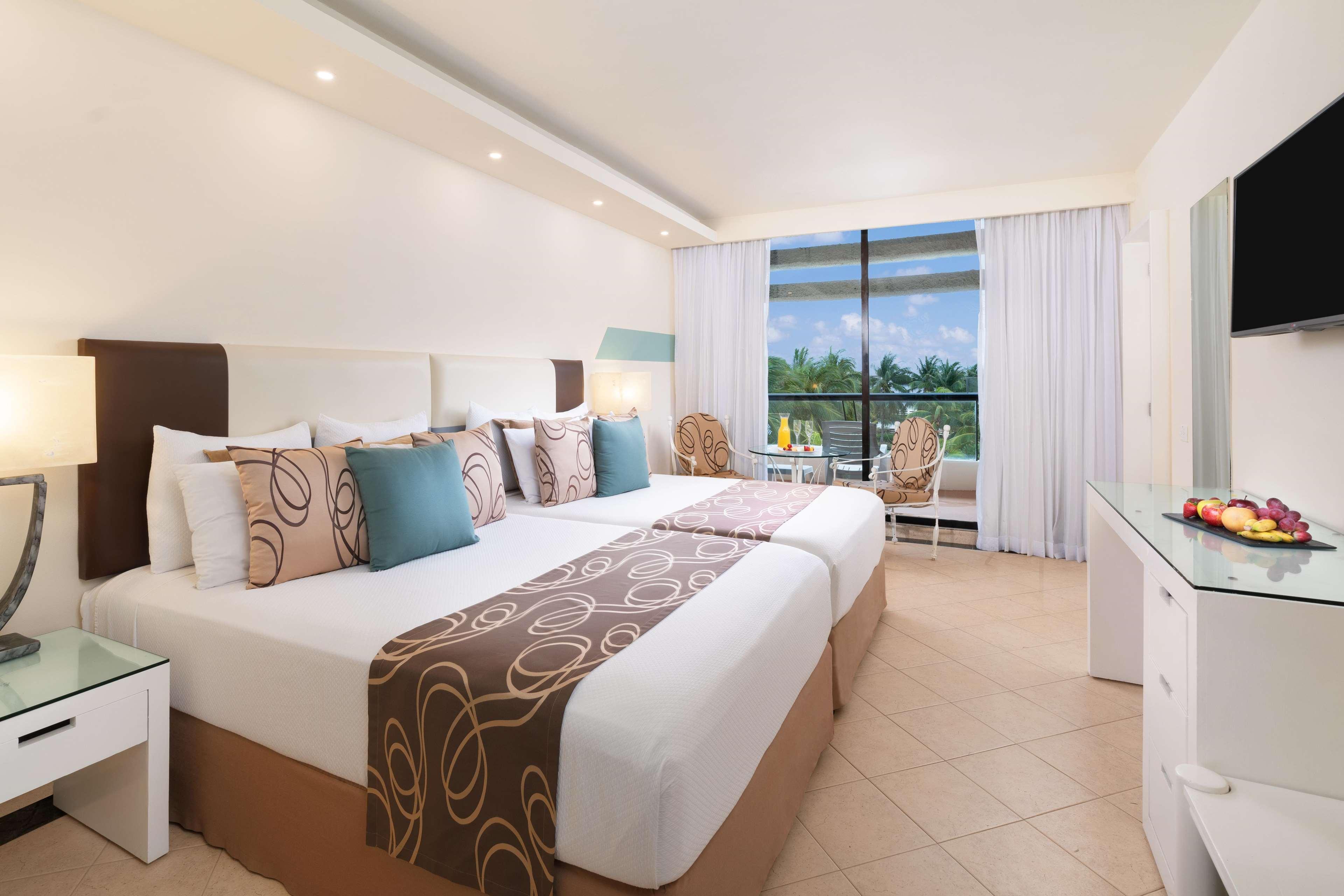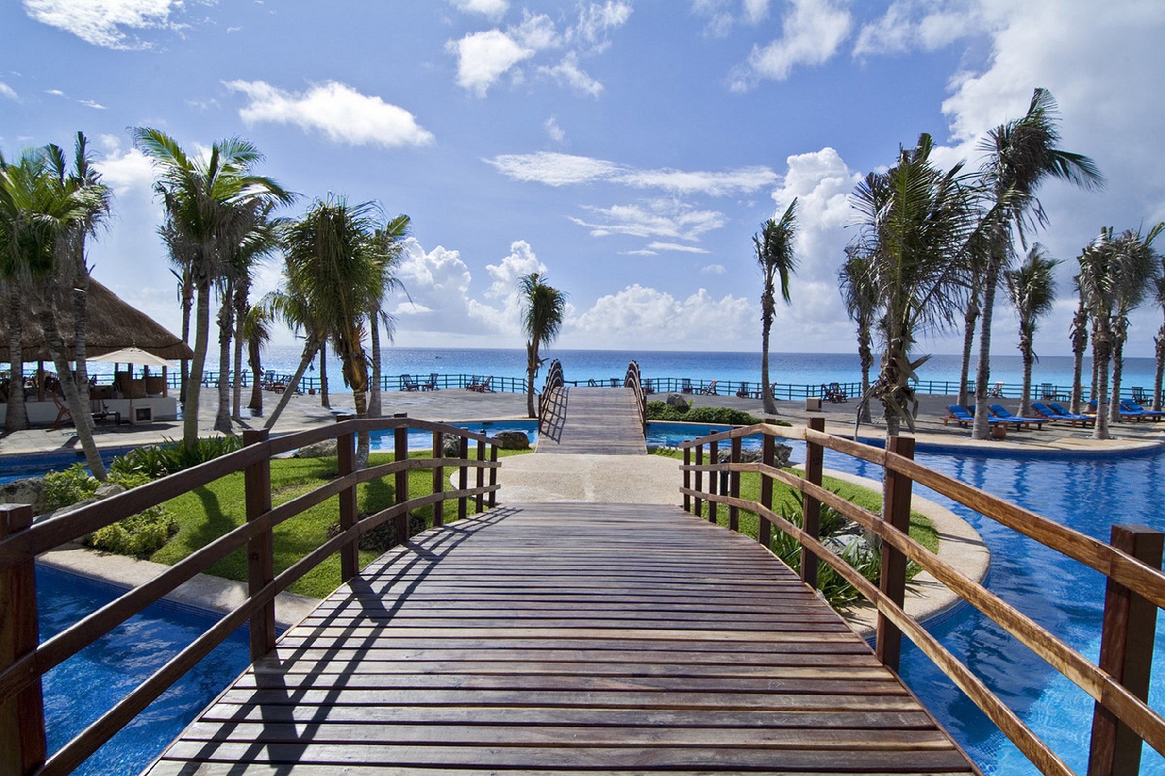 Set right on the beach, close to shops, bars and restaurants, is this beautiful hotel, just 14 km from the Cancun International Airport. The central pyramid-shaped building is surrounded by four other buildings, all on a breathtaking beach, where guests may enjoy the sun, sand and crystal clear waters of the Caribbean. This resort is the perfect place to escape to a warm, sun-filled family holiday. Situated in the heart of the city, the establishment provides the ideal base for exploring the city. There are multiple public transport links within easy reach. Guests may take advantage of the on-site car park. This beautiful hotel offers cosy rooms where to disconnect from daily routine. The complex counts with 7 restaurants where to indulge in sumptuous dining and fabulous leisure facilities including 3 pools, spa, gym and tennis courts. Travelers may also make use of internet and parking.