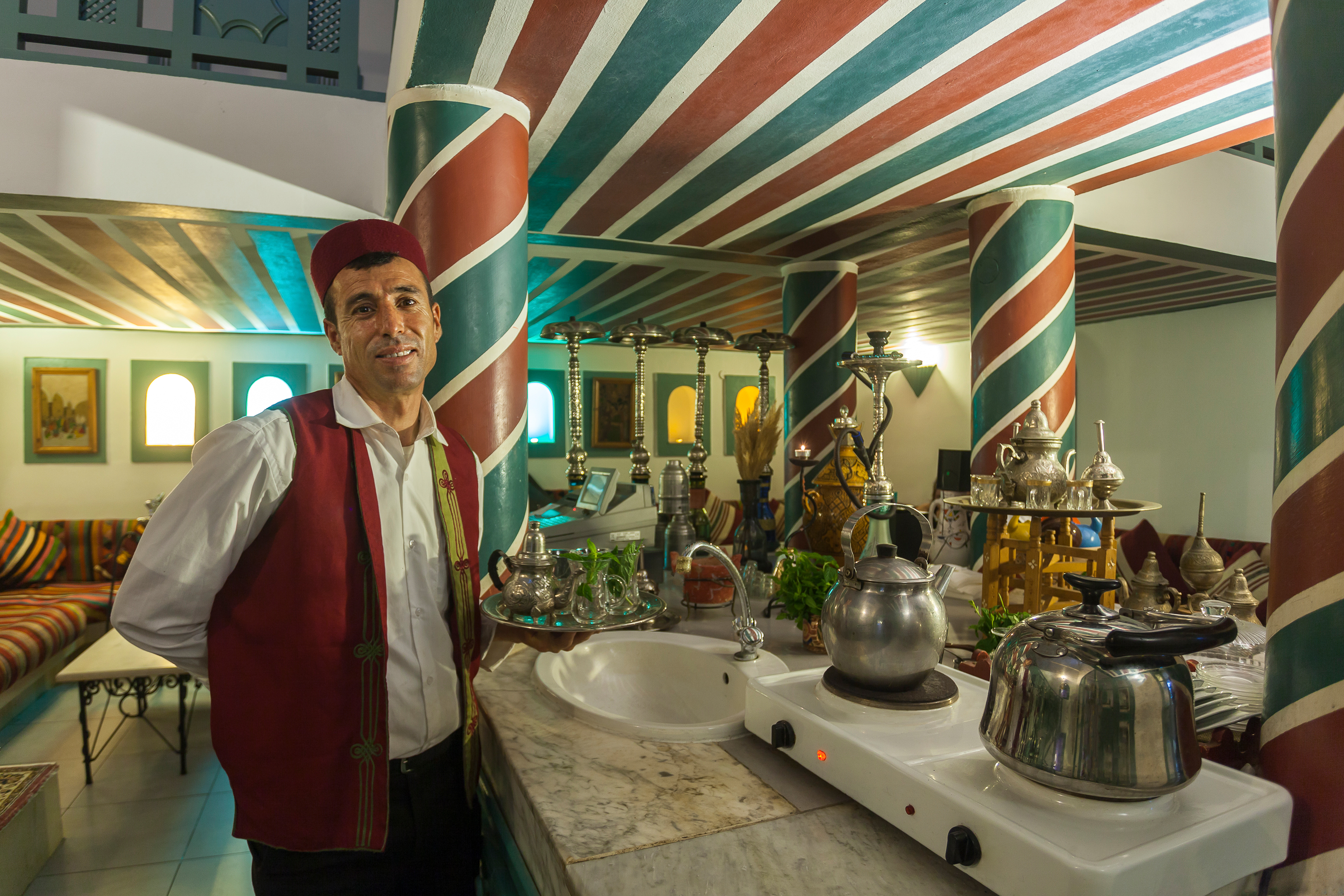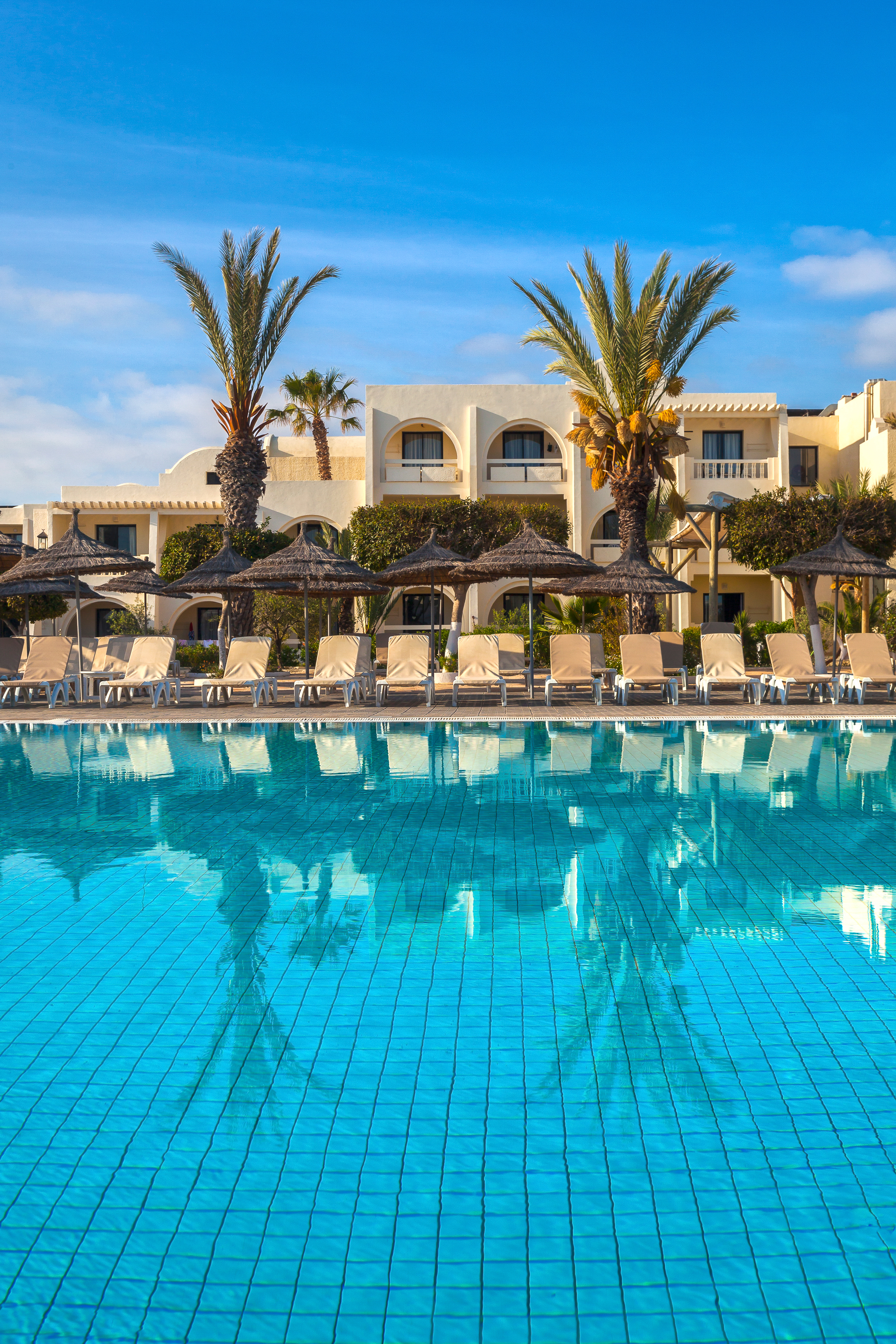 This fantastic resort is located in the heart of a coastal oasis in the touristic area of Midoun, at only 200m from the beach and 5km from Midoun town centre. The establishment offers a symphony of colours, shapes and fragrances, drawing its inspiration from the architecture of menzels djerbiens, which for centuries have provided their occupants warm in winter and cool in summer. The rooms, the majority articulated around an open courtyard with palm trees and bougainvillea, are decorated with great care, offering a charming and comfortable ambiance. Guests can choose between a variety of dining and wining options, including regional and international specialities. The hotel has been specially formed to reconcile the good practice of physical care and offers and excellent spa area with a salt-water aqua tonic pool, sauna, hydro-massage baths and a fitness centre.