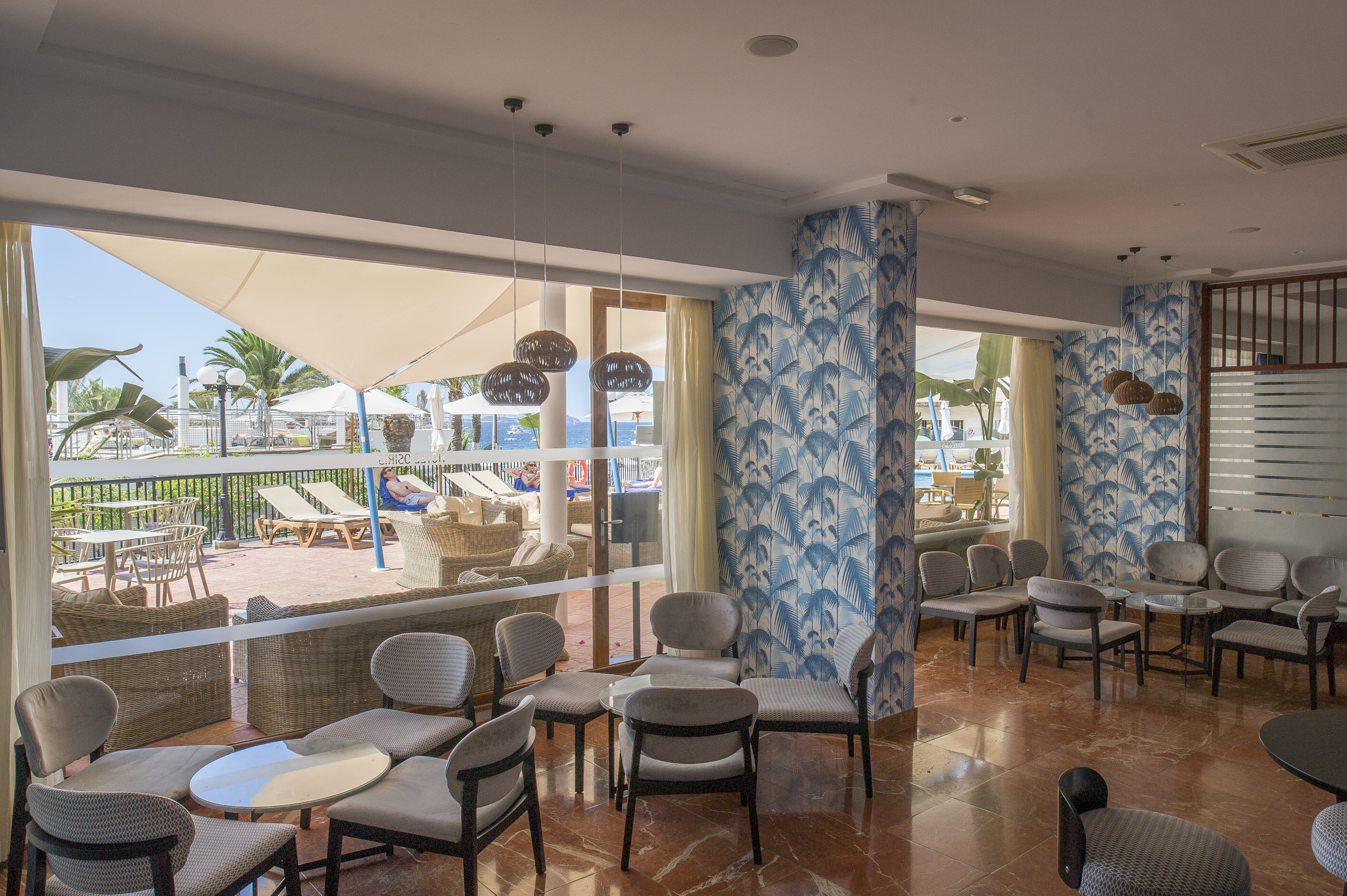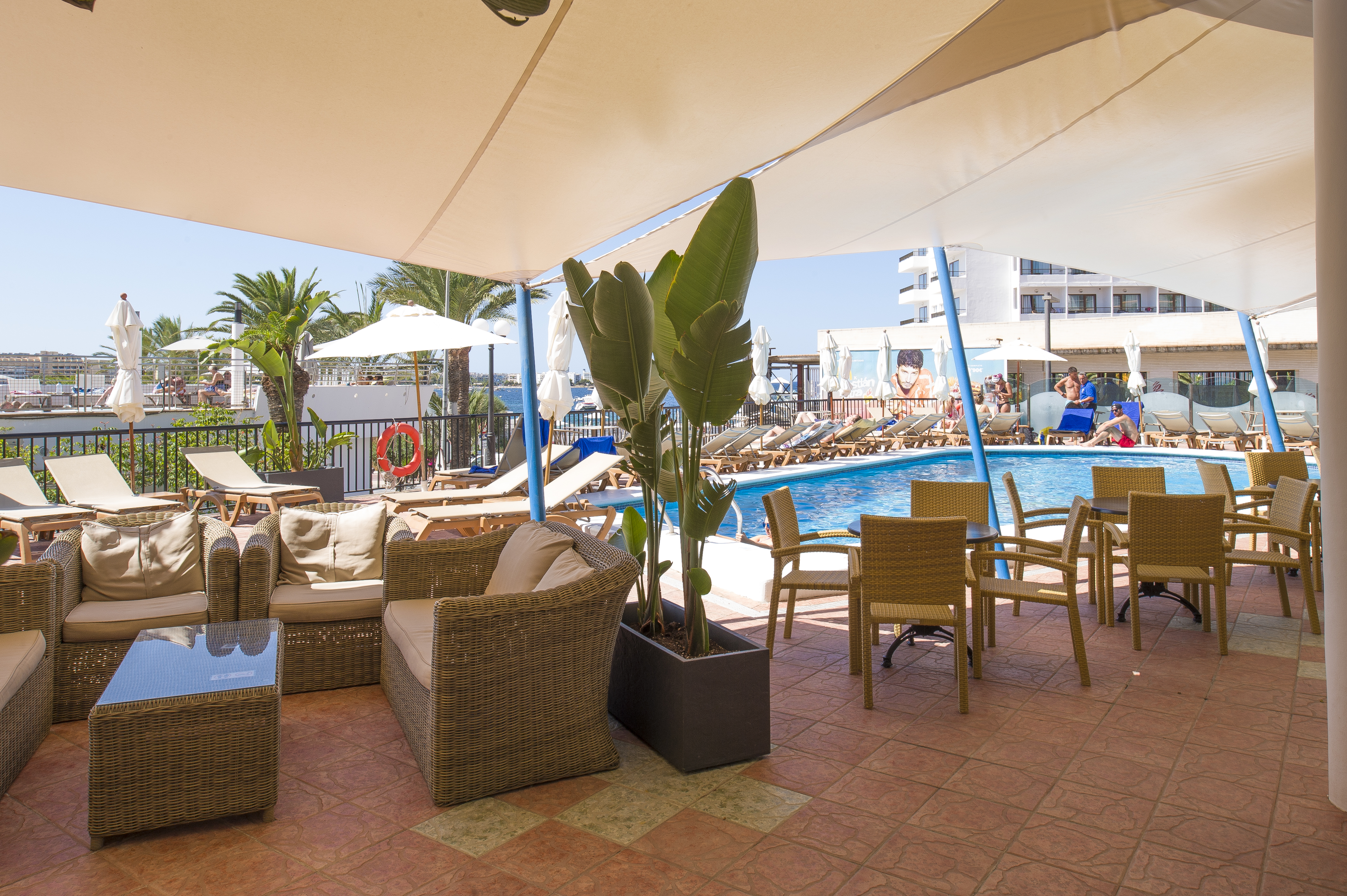 This beach hotel in San Antonio bay is centrally situated just across the road from "Es Pouet" sandy beach and the blue sea. The hotel is located just a short distance from the tourist centre of the town. Plenty of shopping venues, countless restaurants, bars and nightclubs are to be found in the hotel's neighbourhood as are links to the public transport network. The centre of San Antonio can be reached on foot, lying just 1.5 km from the hotel.