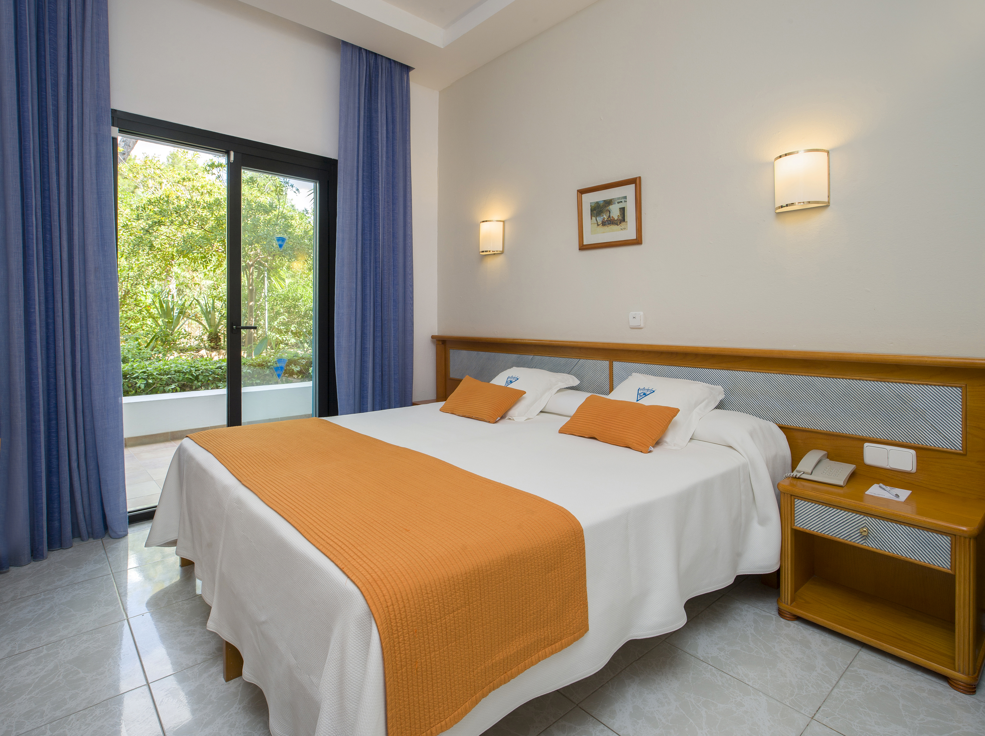 The rooms all include a bathroom/shower with hair dryer, a direct dial telephone, satellite TV, ceiling fan and air conditioning. Furthermore, a furnished balcony or terrace (only in twin and double rooms) is also a feature with either a sea view of a view of the garden. A cot for babies is available without an additional charge. Double bed available on request.