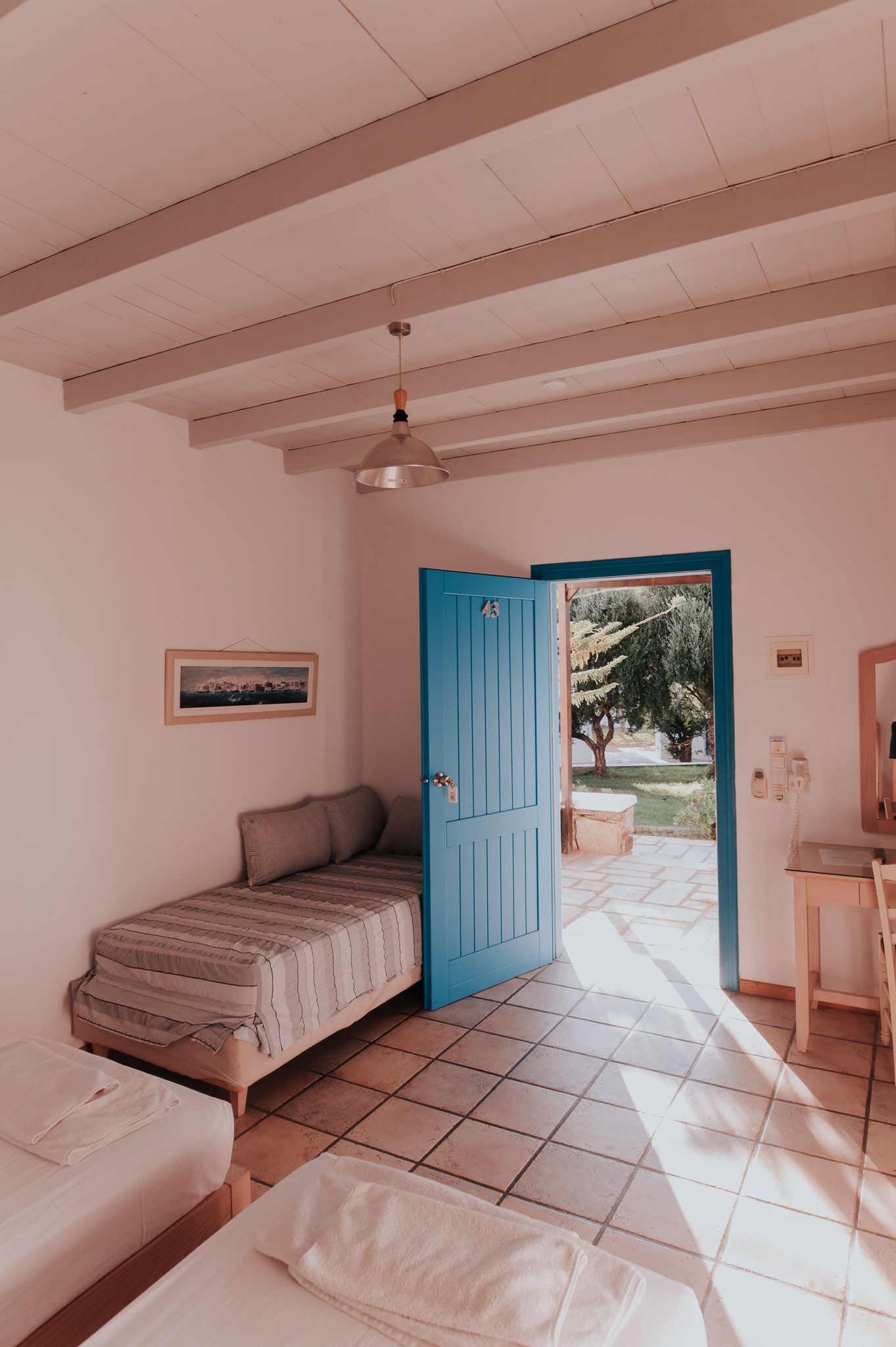 This hotel is located directly beside Mylopotas Beach, about 2 km from the centre of Ios. It is roughly 4 km to Ios port. Constructed in 1995, this beach hotel was harmoniously designed in traditional Cycladic architecture and comprises gardens as well as a total of 45 rooms. Within the air-conditioned, comfortable building, guests can make use of the lobby area, a selection of shops, a bar, and a breakfast room. Room and laundry services as well as a car park round up the offerings. The rooms all come with an en suite bathroom and are fully - equipped as standard. In the hotel grounds is a swimming pool with a children's paddling area and a poolside snack bar. In addition, it is possible to play tennis or billiards.
