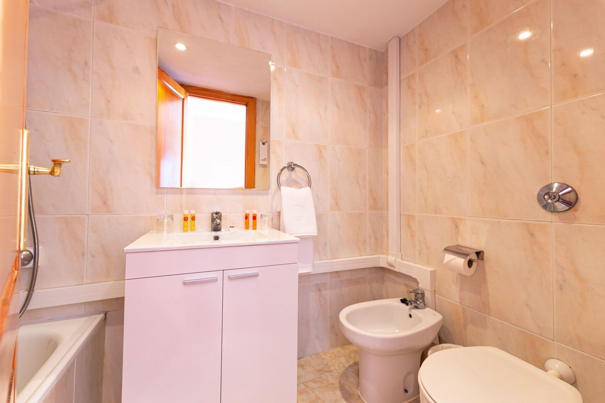 This welcoming hotel lies amidst beautifully kept gardens overlooking the marina of El Arenal. A kilometre-long beautiful sandy beach is only 200 m from the hotel. A selection of shopping and entertainment venues is to be found nearby in Arenal. Links to the public transport network lie in front of the hotel. Superbly situated, this hotel is spread over 7 floors and comprises 125 rooms of which 6 are suites. It features various facilities including a foyer with a 24-hour reception desk, a TV room and a lift. In addition to this, a cosy bar and an air-conditioned restaurant are on offer. The hospitable rooms come with an en suite bathroom with shower and modern amenities. There is a swimming pool in the outdoor complex as well as sun loungers and parasols for guests to enjoy. The nearest golf course is approximately 4 km away.